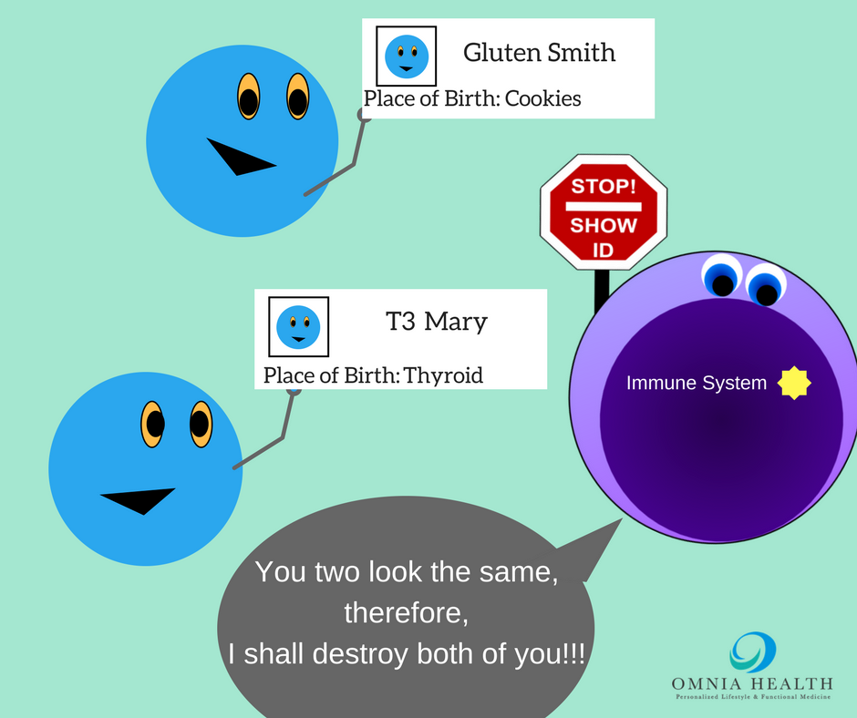 And since gluten molecules look very similar to thyroid molecules the troops can get carried away and not only attack all the gluten molecules, but your thyroid as well. This leads to the autoimmune condition called Hashimoto’s.